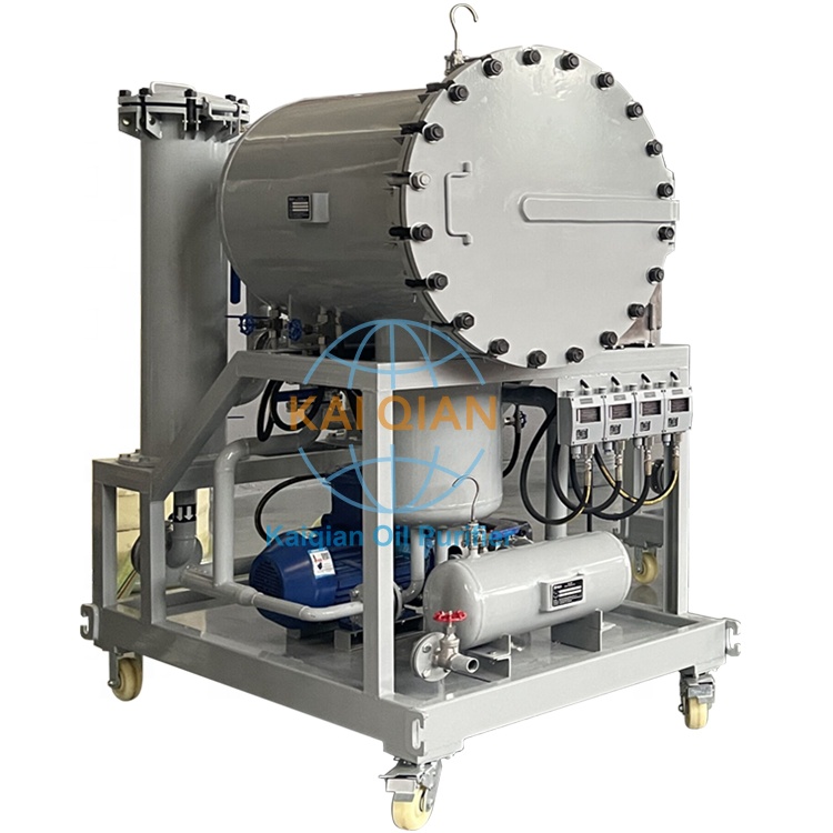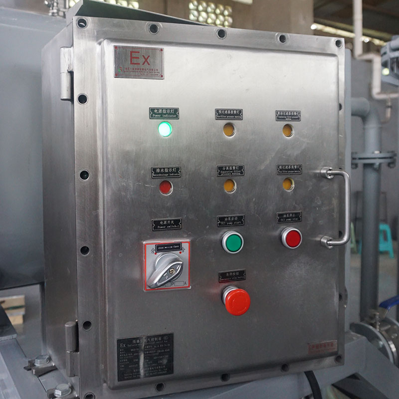 柴油凈油機(jī)針對(duì)大分子水使用的優(yōu)點(diǎn);無(wú)需加熱除水,不同的液體有著不同的表面張力,而液體流過小孔時(shí),表面張力越小,所通過的速率就越快,當(dāng)不同的混合液體流入聚結(jié)分離器后,首先進(jìn)入聚結(jié)濾芯,聚結(jié)濾芯具有多層過濾介質(zhì),其孔徑逐層遞增。由于表面張力的差異,油液快速通過濾層,而水卻緩慢得多;由于聚結(jié)濾芯采用親水性材料,微小的水滴更是吸附在濾層表面從而形成水滴的聚結(jié)。受動(dòng)力的作用,小液滴競(jìng)相通過開孔,逐漸匯成大的液滴,并在重力作用下沉降而與油液分離,通過聚結(jié)濾芯后的油液,仍有尺寸較小的水珠在慣性作用下向前至分離濾芯。分離濾芯由進(jìn)口特殊的疏水材料制成,在油液通過分離濾芯時(shí),水珠被擋在分離濾芯的外面,而油液則通過分離濾芯,并從出口排出。
