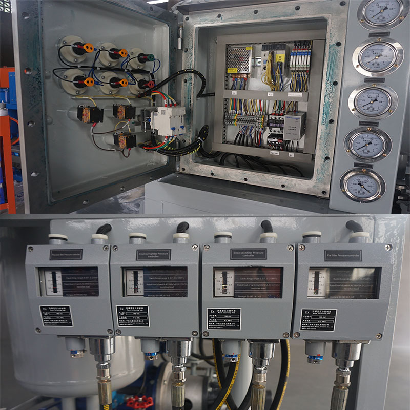 9.功能閥:用于倒油,即油液不通過本機(jī)過濾系統(tǒng)直接排出和將聚結(jié)分離罐內(nèi)油液排出,以方便檢修本機(jī)。