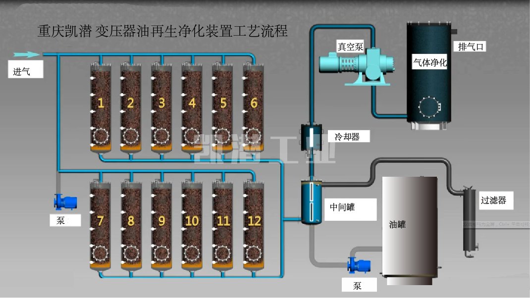 重慶凱潛工業(yè)變壓器絕緣油再生裝置結(jié)合國內(nèi)外_先進變壓器絕緣油再生處理工藝,既能除去劣質(zhì)的變壓器油酸值、氧化物、積碳、烴、氫、乙炔、開關(guān)油中的酸性成分、懸浮物質(zhì)、沉淀物質(zhì),能使劣質(zhì)的變壓器油、開關(guān)油再生利用。